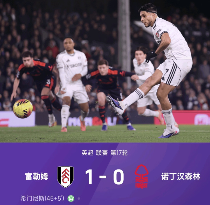 英超第17轮:希门尼斯点射制胜 富勒姆1-0诺丁汉森林